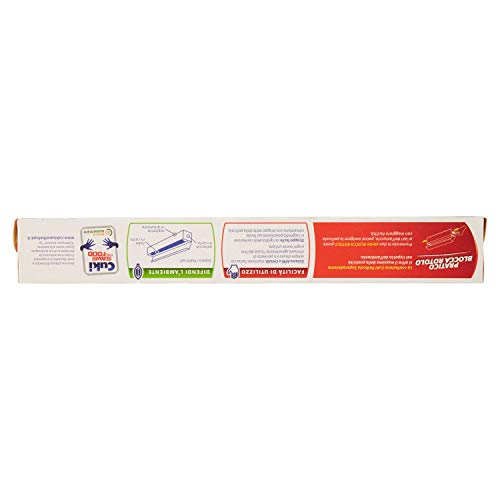 La confezione è dotata di un comodo sistema "apri&chiudi" che permette di mantenere l'astuccio sempre chiuso e delle alette "blocca rotolo" che permettono di svolgere la pellicola con maggiore facilità.