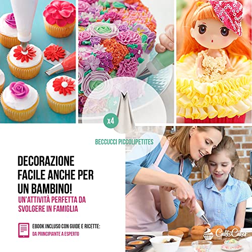 CukkiCakes Beccucci Russi | SET Decorazione per Fiori di Torta/Cupcake 55 Pezzi: 30 Beccucci Sac a Poche + 20 Tasche da Pasticcere Usa e Getta + 1 Sacca in Silicone + 3 Adattatori + Guida