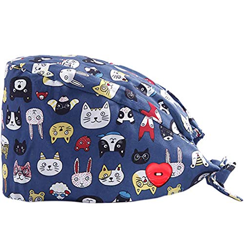 Culater 3PCS Berretto Unisex in Cotone con Cappuccio Chirurgico con Fascia Regolabile per Fodera per Cappello Medico con Stampa Coda di Cavallo per Infermiere Medico (Multicolor)