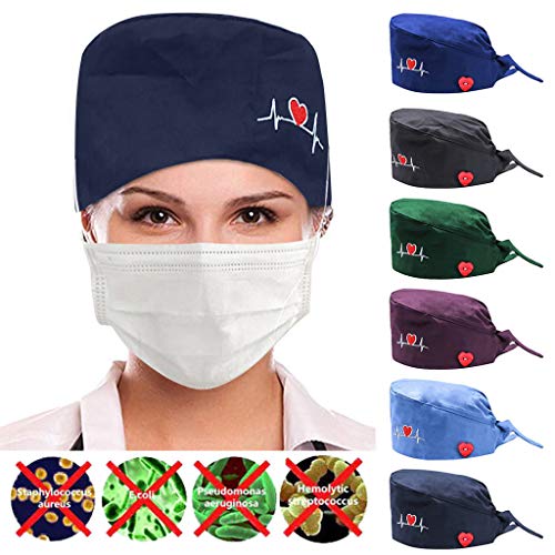 Culater Berretto Unisex in Cotone con Cappuccio Chirurgico con Fascia Regolabile per Fodera per Cappello Medico con Stampa Coda di Cavallo per Infermiere Medico Battito del Cuore (Navy)