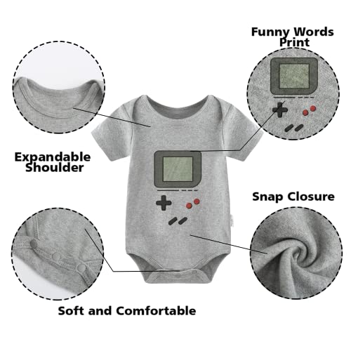 Culbutomind, tutina per neonati, a maniche corte, motivo Gameboy, body per neonati e neonate, con bavaglino grigio mélange M