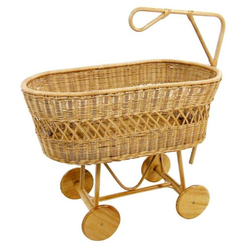 Culla per neonati in midollo naturale con ruote in legno Dimensioni Larghezza 102 cm Profondita 52 cm Altezza 43/77 cm Colore: Naturale Versione/Posti: Con Ruote Altezza: 77 Larghezza: 102 Profondità: 57 Materiale: Vimini Tipo: Culla