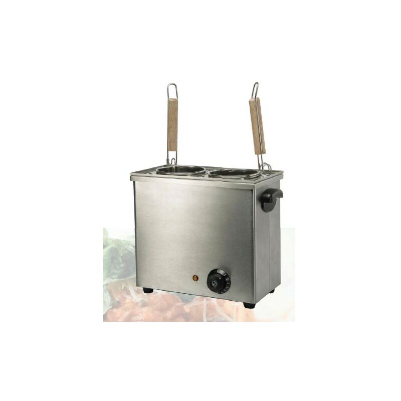 Codice RS9579 - Cuocipasta elettrico da banco modello BE-CP2, dimensioni cm. 37x23x30 (lxpxh), 230 volt, 2.5 kw, termostato di regolazione +30 +110 °C. Struttura in acciaio inox, n.2 cestelli dimensioni cm. 12x14 (dxh) compresi nella fornitura.
