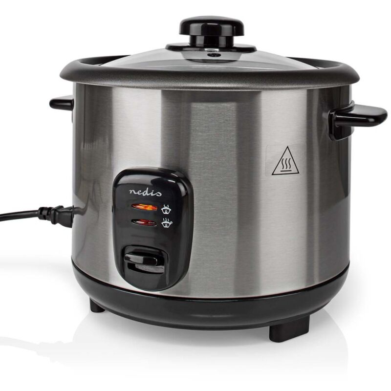 Con questo cuociriso Nedis KARC115AL con alloggiamento in acciaio inossidabile di Nedis puoi cucinare il riso più gustoso in pochissimo tempo. Non dovrai più preoccuparti di cuocere troppo il riso perché il cuociriso passa automaticamente alla funzione di mantenimento in caldo una volta che il riso è cotto. Il cuociriso ha una capacità di 1,5 litri e una potenza di 500 Watt, che permette di preparare fino a 5 porzioni di riso contemporaneamente. Ciò rende il cuociriso ideale per preparare la cena per tutta la famiglia. Naturalmente potete cuocere anche piccole quantità di riso. Il cuociriso ha un coperchio in vetro e una pentola interna con rivestimento antiaderente, in modo che il riso non si attacchi alla padella. La padella interna è rimovibile, facilitando la pulizia. La lievitatrice viene fornita con un cucchiaio e un misurino Strato antiaderente: Sì Fondo antiscivolo: Sì Spegnimento automatico: Sì Larghezza: 292 mm Capacità: 1,5 l Profondità: 262 mm Altezza: 248 mm Indicatore