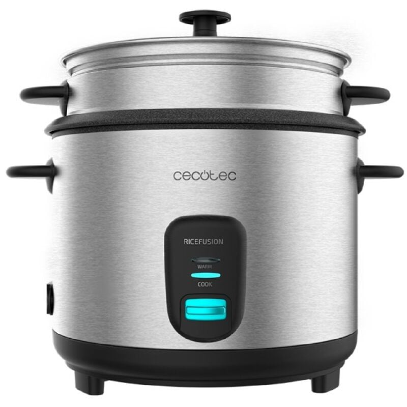 Cuociriso di 700 W di potenza. Prepara fino a 10 porzioni di riso allo stesso tempo. Recipiente interno estraibile e antiaderente di 1,8 L. Funzione automatica di mantenimento del calore. Cuociriso Vaschetta estraibile Vassoio cottura a vapore Coperchio in vetro Cucchiaio Misurino Presa elettrica VDE smontabile Manuale di istruzioni