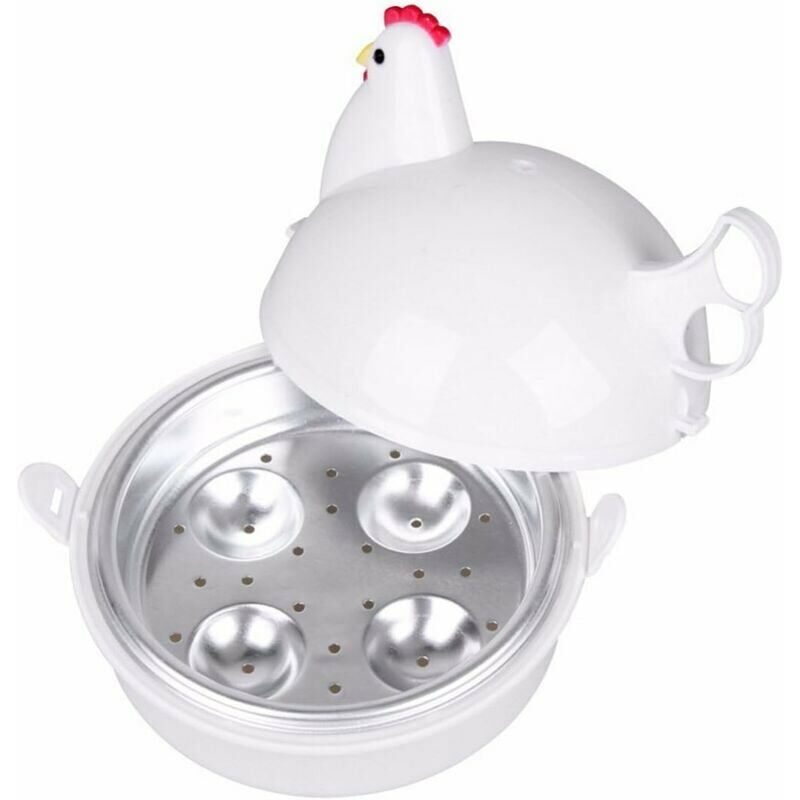 Un ottimo modo per cuocere le uova nel microonde senza sporcare o faticare. Basta riempire d'acqua la base del gioco, posizionare le uova sul vassoio, coprire il coperchio e far bollire nel microonde.