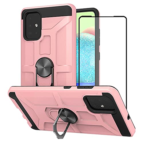 Cuoqing Cover Samsung Galaxy A71 con Pellicola Vetro Temperato, Antiurto Protezione Silicone con Kickstand Custodia per Samsung Galaxy A71 (Oro Rosa)