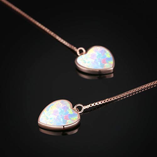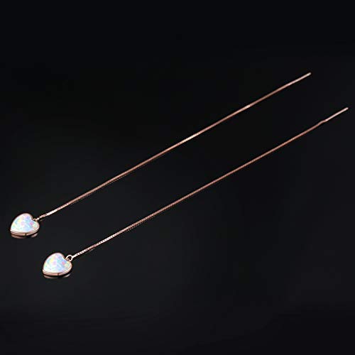 Cuore infila orecchini, opale Threader lunga catena in argento Sterling placcato oro 18 K lunga catena orecchino per le donne