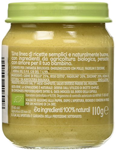 Cuore di Natura - Omogeneizzato Pollo Con Fagiolini e Zucchine Bio - Confezione da 6 vasetti x 110 g