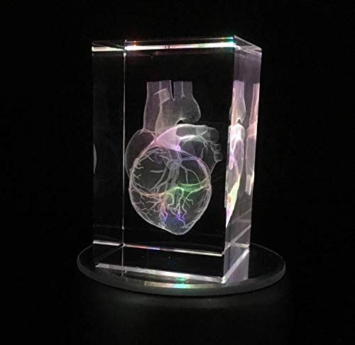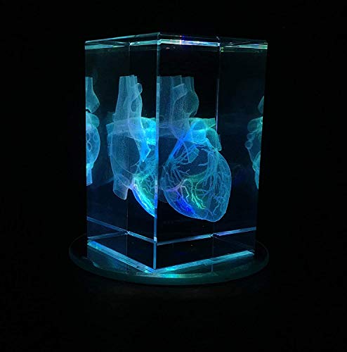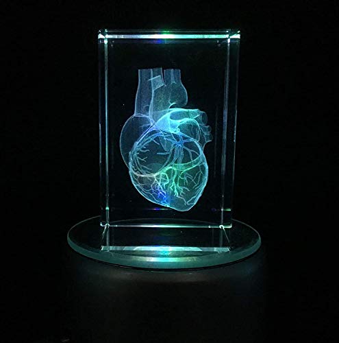Cuore umano Modello anatomico 3D fermacarte (Laser Etched) in Scienze regalo di cristallo Glass Cube Incluso LED Base (3.1X2x2 pollici)
