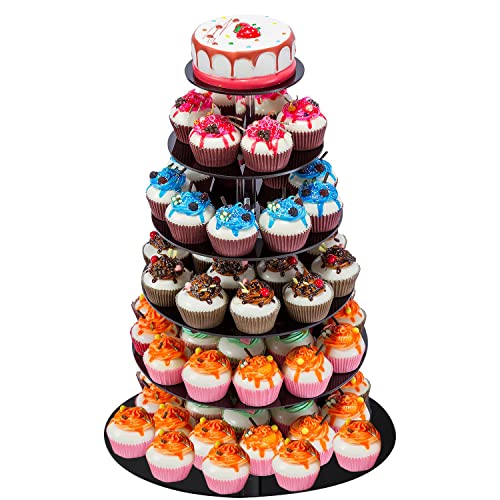 Cupcake Stand, ULIFEME 6 Livelli Alzata per Cupcakes, Buffet, Nuziali, Focaccina, Supporto per Compleanno e Partito, Acrilico Spessore 4mm, Diametro Nero Rotondo 16'' / 14'' / 12'' / 10'' / 8'' / 6''