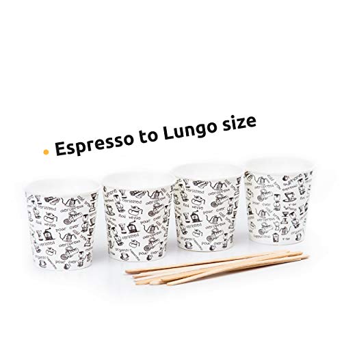 CupCup 150 Bicchieri Carta Espresso To Go 110 ml con Bastoncini per Mescolare in Legno per caffè da Portar Via
