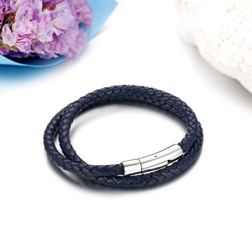 Cupimatch Bracciale Braccialetto da Uomo Donna Chiusura in Acciaio Inossidabile Cinturino in Pelle Intrecciato Multistrato a Spirale Colore Blu Perfetto Regalo
