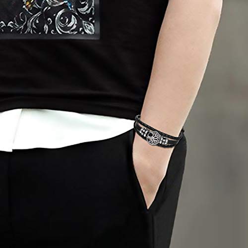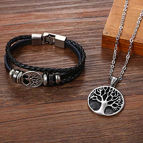 Cupimatch Bracciale in pelle con ciondolo a forma di albero della vita, in acciaio inox, 55,9 cm, Pelle