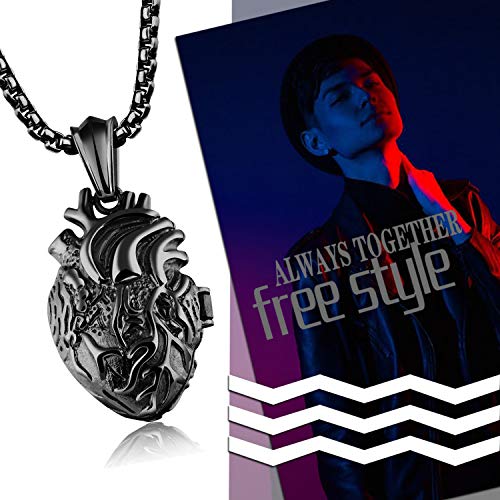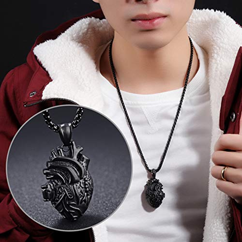 Cupimatch Collana Uomo Pendente Ciondolo Cuore Organo Anatomico Apribile Catena Acciaio Inossidabile Nero