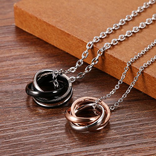 Cupimatch Set di 2 collane con ciondolo a forma di coppia in acciaio inossidabile, con anello a incastro, con catenina da 45,7 cm e 50,8 cm inclusa, Metallo, Senza_pietra