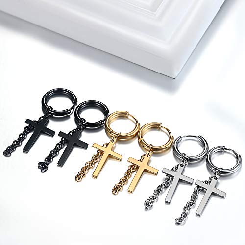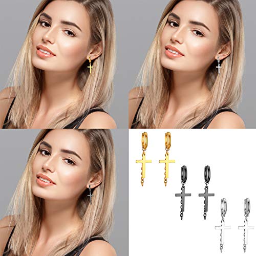 Cupimatch【3 Coppie】Orecchini Hip Hop pendenti neutri in Acciaio Inossidabile con frange di personalità Regalo Perfetto in Nero Oro Argento