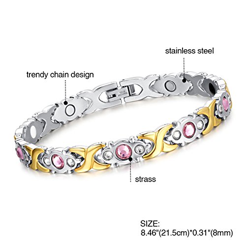 Cupimatch donna braccialetto catena acciaio inossidabile mosaico strass magnete argento oro