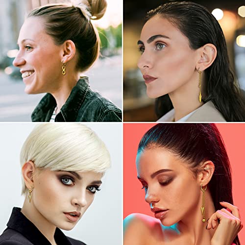 Cupimatch Set di Hip Hop Orecchini Pendenti a Cerchio per Uomo Donna Incernierati in Acciaio Inox Orecchini a Catena Lunga Clip Rotondi Zircone Croce Piuma Rivetto Infinito Colore Oro,18 Pezzi