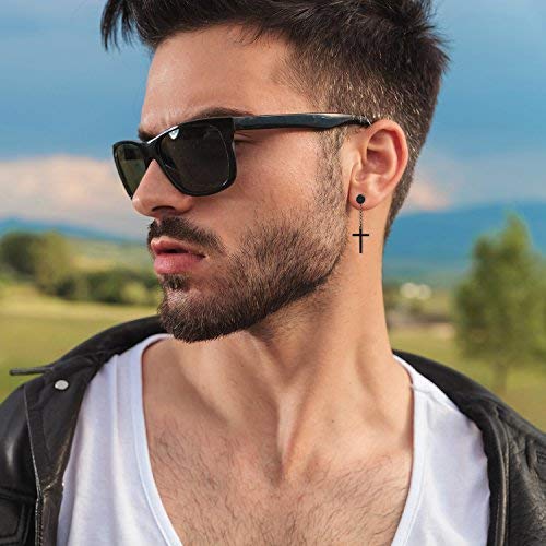 Cupimatch - Set di 3 paia di orecchini a perno con ciondolo a forma di croce, per uomo e donna, in acciaio inox, con chiusura a vite