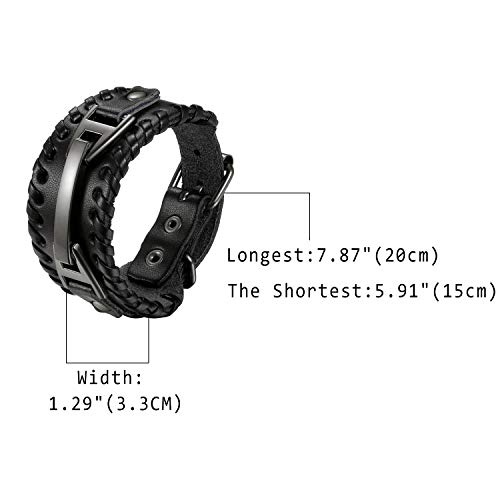 Cupimatch Uomo Braccialetto Bracciale Pelle Intrecciato Regolabile Tribale Hip Hop Nero Regalo di Halloween