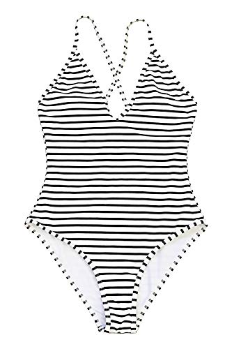 CUPSHE Costume da Bagno da Donna Scollo a V Strisce Back Cross Costume Intero, S