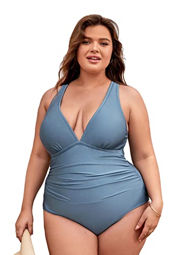 Design: mostra la tua migliore forma del corpo in questo costume da bagno unico unico blu increspato taglie forti. La profonda scollatura a V e il retro con lacci incrociati lo rendono una scelta lusinghiera per tutti