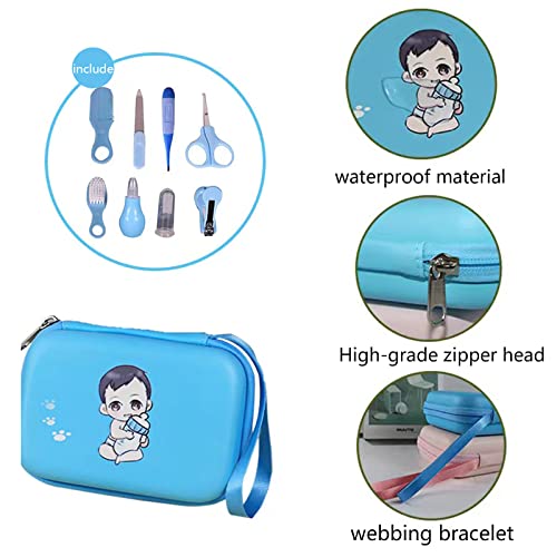 Set per la Cura del Bambino, 8 pezzi Accessori Neonato per la Cura del Neonato, Asilo, uso domestico,Ottima Idea Regalo per Nascita o Battesimo (blue)