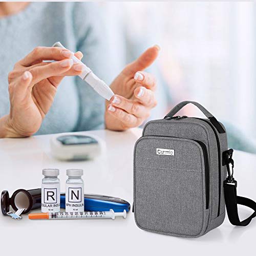 CURMIO Custodia da viaggio per refrigeratore per insulina, borsa organizer per farmaci per diabetici con tracolla per penne per insulina e forniture per diabetici, Grigio