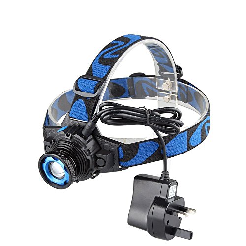 Torcia frontale in materiale impermeabile resistente all'acqua (non subacquea) con Led CREE, dotata di zoom che permette di allargare e restringere il fascio di luce per avere una luminosità più ampia o più profonda.