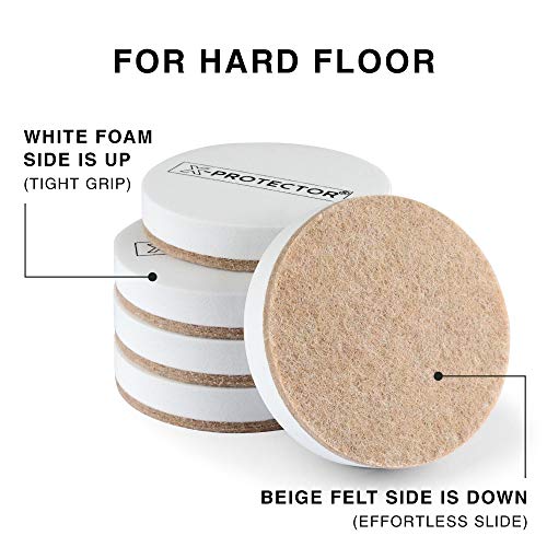 Cursori di Mobili in feltro per pavimenti in legno X-PROTECTOR 16 pz - Scivoli per Superfici Dure - pattini slittanti in feltro bianco Ø 9cm - Alianti per Mobili - Sposta i tuoi mobili in modo facile!