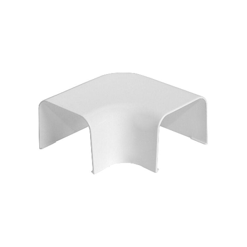 Per congiungere ad angolo retto due canaline posizionate una orizzontalmente, una verticalmente. In PVC rigido stabilizzato contro i raggi UV, antiurto, autoestinguente. (DianFlex) 65 x 50 mm