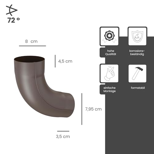 Curva pluviale in zinco, piegata in un unico pezzo, 72 gradi marrone rame DN 80