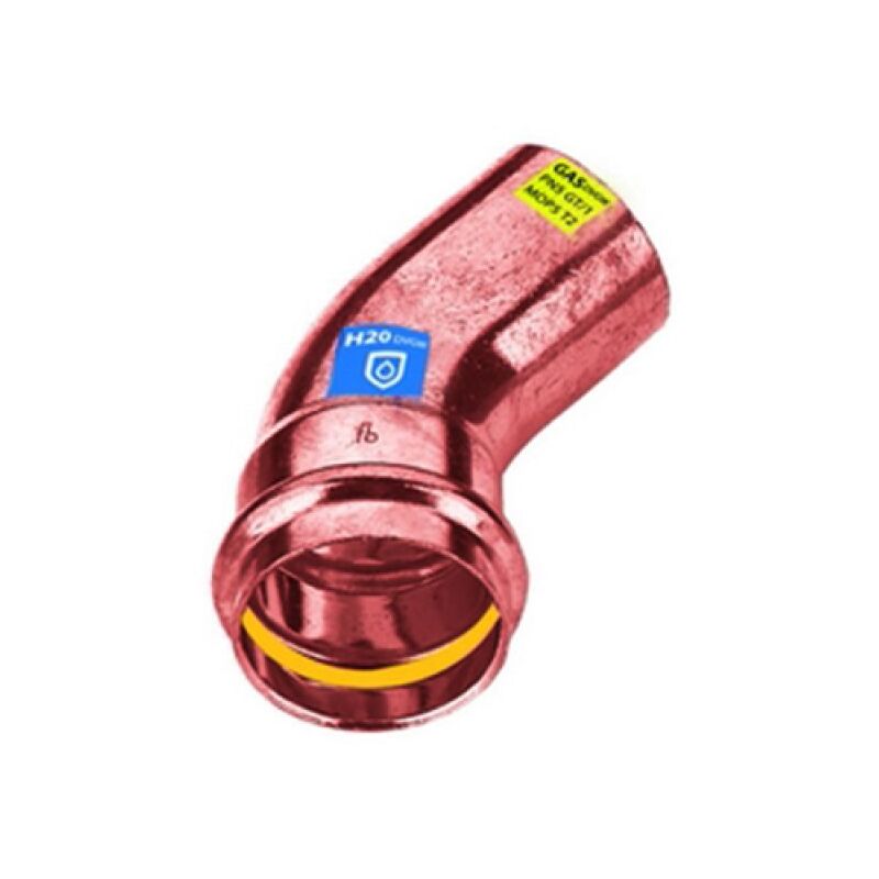 Raccordi in rame CW024A a pressare FRABOPRESS SECURFRABO. Raccordo unico per acqua e gas. Rame secondo EN1057. O-ring giallo in HNBR. Profilo di pressatura: V. (DianFlex) Diam. 15