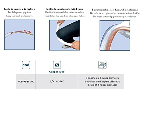 Kit sonde piegatubi per tubi rame climatizzazione Diametri: 1/4" colore Rosso 3/8" colore Verde Lunghezza singola sonda 4 Mt. L'articolo è indispensabile per evitare rotture o schiacciameti dei tubi di rame negli impianti di climatizzazione