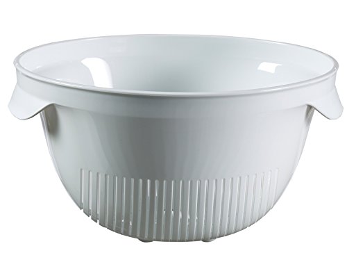CURVER 00734-059-00 Essentials-Scolapasta con Manico in plastica, Colore: Bianco/Multicolore, 28 x 23,5 x 13,4 cm