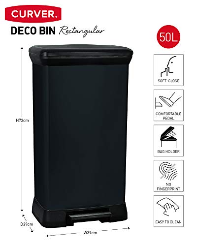 Curver Deco Bin Rettangolare A Pedale 50Lt - 39X29X73H Nera