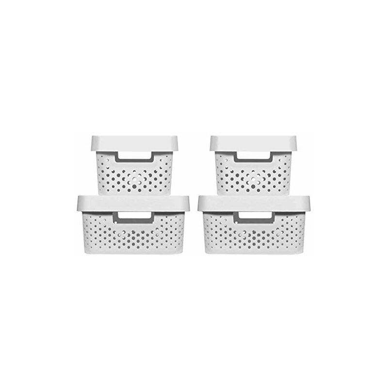 Curver Infinity Set di 4 cestini con coperchio riciclato, 2 pezzi, misura M 11 L e 2 unità misura L 17 L, colore: grigio 2xS, 2xM