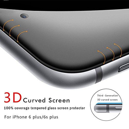 3D curvo Edge Design Vetro Temperato Protezioni Dello Schermo per iPhone 6 Plus e 6s Plus 5,5" da iTop iMegaStore, 3D Curva In Forma. Copertura completa per i bordi curvi. 9H vetro temperato [3D Toccare Compatibile] - Nero