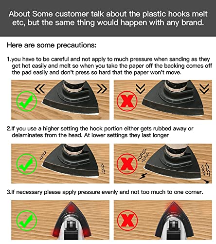 Kit di cuscinetti abrasivi oscillanti da 130 pezzi: include 5 cuscinetti abrasivi triangolari, 125 fogli di carta vetrata triangolare. Carta vetrata triangolare - (25) grana 60, (25) grana 80, (25) grana 120, (25) grana 180, (25) grana 240. Per la levigatura dello smalto di legno/intonaco e altre superfici, la carta vetrata a grana diversa può essere levigata per diversi materiali per ottenere i migliori risultati.
