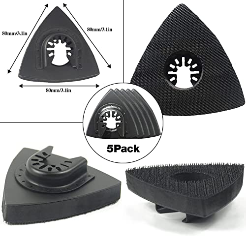 Tampone abrasivo triangolare: con supporto cromato e composizione di cuscinetti in materiale PU, doppia faccia e gancio e tipo di anello, dimensioni dei tamponi abrasivi multiutensile: 80mmx80mmx80mm, misura carta vetrata: 80mmx80mmx80mm.
