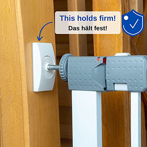 ✅ [ORA ANCHE SICURO - CON TAPPI DI SILICONE PREMIUM] Vogliamo rendere il vostro cancelletto per bambini ancora più sicuro - la nostra nuova versione dei nostri tamponi da parete per cancelli per scale è ora dotata di tamponi in silicone extra spessi.