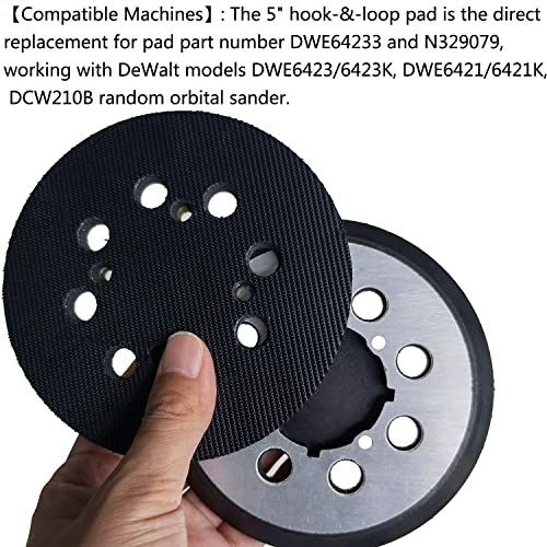 Macchine compatibili: il supporto per levigatrice a strappo da 5 pollici è compatibile con DeWalt modello DWE6423/6423K, DWE6421/6421K, DCW210B ROS. È la sostituzione diretta per il numero di parte pad DWE64233, N329079, RSP54. Se il modello della levigatrice non è menzionato, si prega di controllare lo schema del tampone originale. Se il nostro pad non si adatta alla levigatrice o qualsiasi altra cosa ti rende insoddisfatto del nostro pad, ti preghiamo di contattarci via e-mail e ti daremo un rimborso completo.