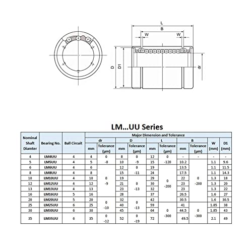 Cuscinetti a sfera lineari, diametro foro 25 mm, diametro 40 mm, lunghezza 59 mm (LM25UU confezione da 8)