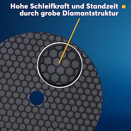 Cuscinetto abrasivo diamantato professionale smerigliatura a secco di EDW, Ø 100 mm Granulazione lucidatore, per pietra naturale e artificiale, granito, marmo, vetro, ceramica, piastrelle