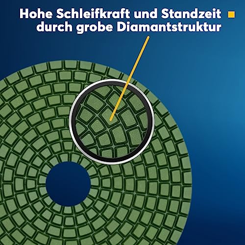 Cuscinetto abrasivo diamantato professionale smerigliatura a umido di EDW I Ø 125 mm I gr 3000 I Supporto in velcro I per pietra naturale e artificiale, granito, marmo, vetro, ceramica, piastrelle