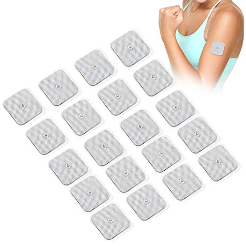 Cuscinetto per Elettrodi da 20 Pezzi per Macchina per Terapia di Massaggio TENS/EMS, Cuscinetti in Gel di Ricambio per Elettrodi da 4 X 4 Cm (tessuto Non Tessuto, Tipo a Bottone)