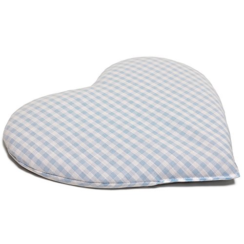 Cuscinetto a forma di cuore con noccioli di ciliegia - 30 x 25 cm - Cotone Bio blu chiaro e bianco - Cuscino termico - Microonde, forno e frigorifero