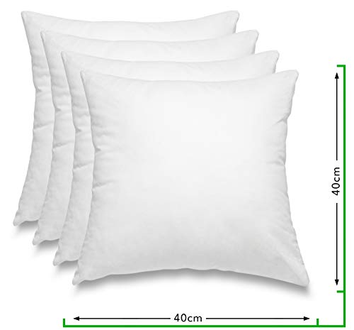 Set di 4 cuscini comfort, 40 x 40 cm, lavabile, imbottitura in piuma, rivestimento in cotone, bianco puro, approvati da Öko-Tex 100