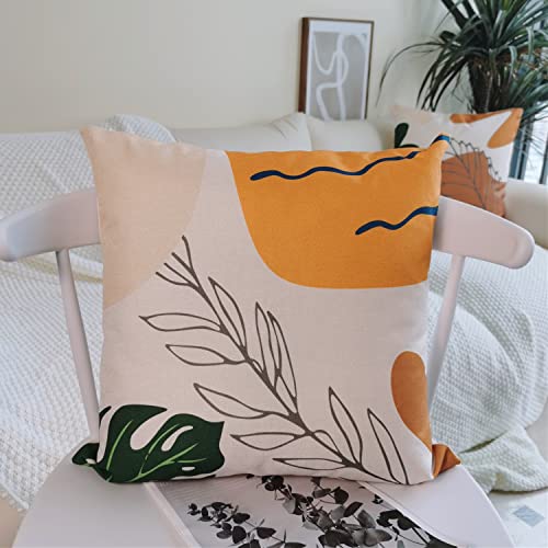 Set di 4 Cuscini Divano Autunno Astratto Foglie Cotone Biancheria Decorativo Copricuscini Divano 45x45cm